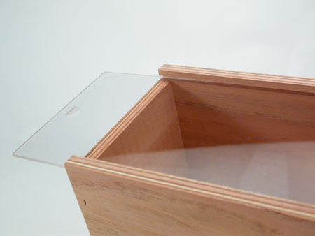 Caja de cedro con frente de madera y tapa corrediza de acrÃlico