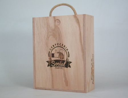 Caja de madera de cedro sin lustrar con tapa corrediza, manija y divisiones.