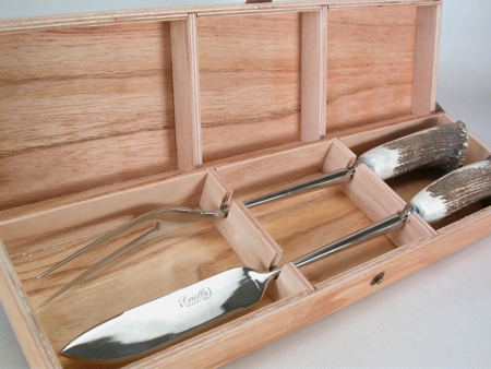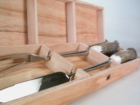 Caja de madera de cedro sin lustrar con espacio para set de trinchar.