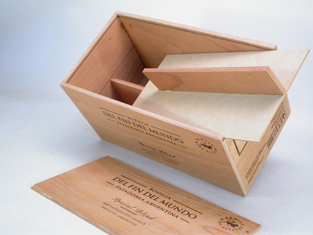 Caja de cedro con separadores de madera para 4 botellas línea Burdeos Premium de Rayen Cura.